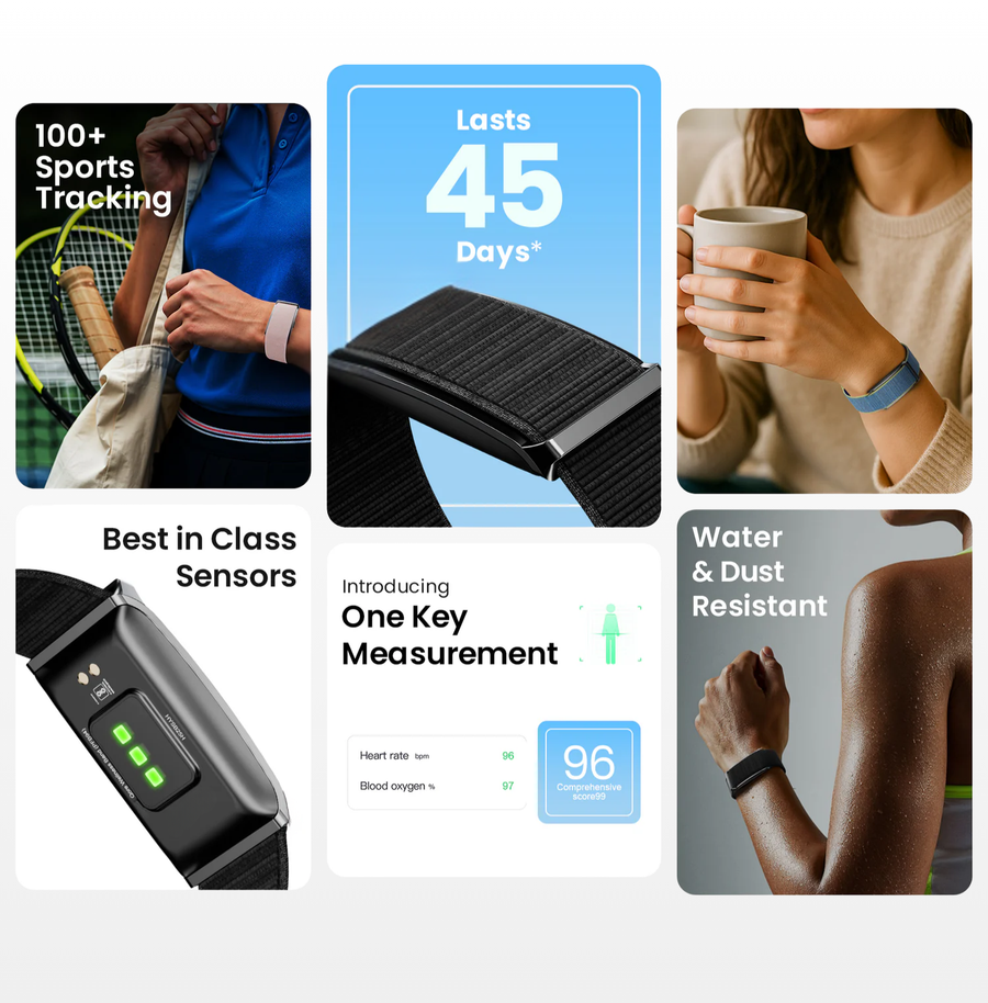 Whether you're an entrepreneur, student, athlete, creator, employee or just seeking discipline, the band helps you structure your daily routine, track your key data and progress day by day.